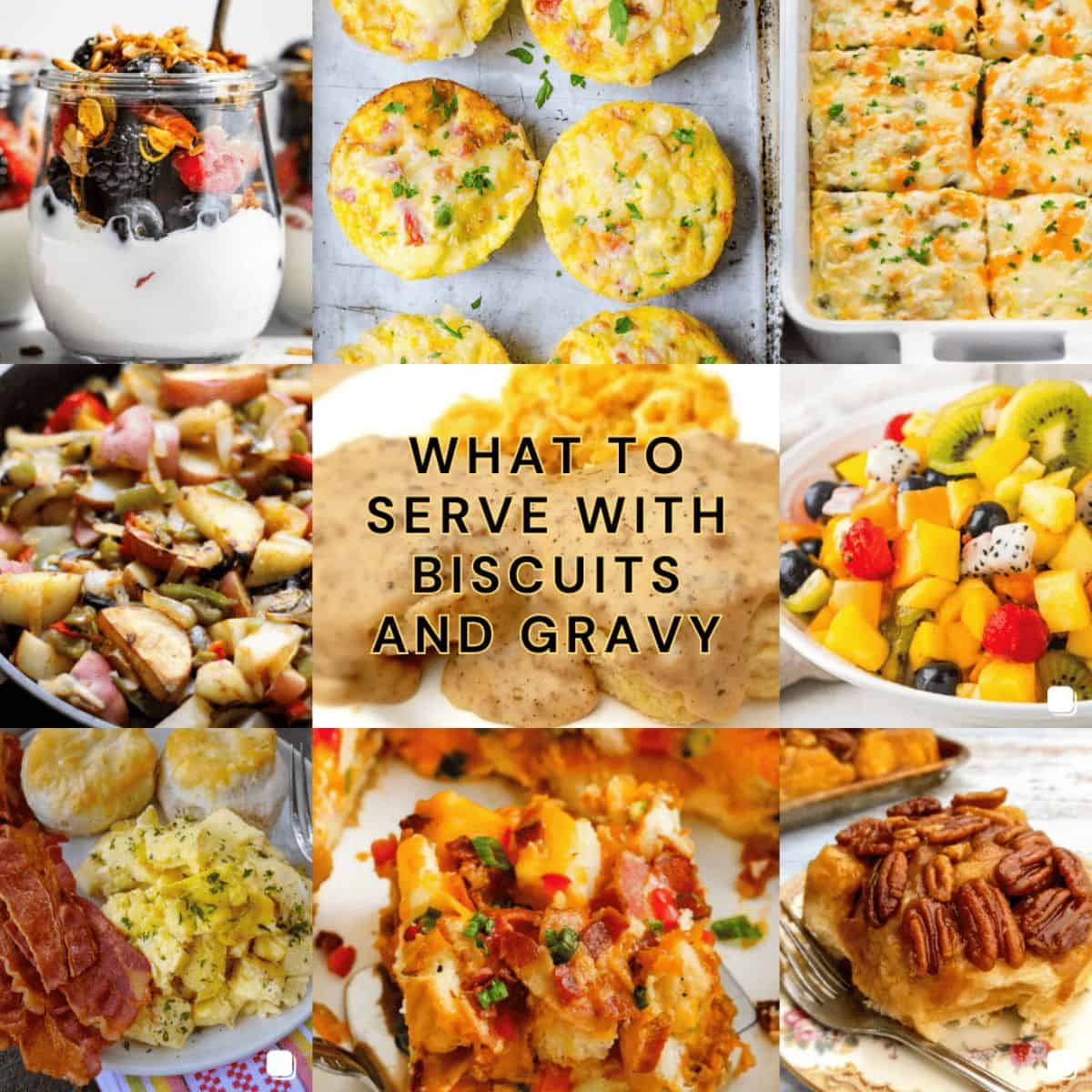 If you're wondering what to serve with biscuits and gravy, this post is a collection of forty-one easy recipes that pair well with sausage gravy and biscuits.